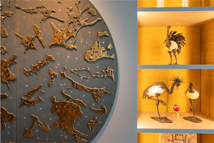 The stars were made possible by 100 optical fibres, carefully sewn through the silk by Estre Engineering to illuminate the bronze within Lindy Lee’s galaxy. No detail has been left overlooked with museum quality lighting from Arco installed by Domus using Lutron controllers and touch panels. Beyond form, the cabinet conceals function: for karaoke; Netflix; for video conference: Brio webcam; and of course BlueSound audiophile quality audio which integrates with the rest of her home.